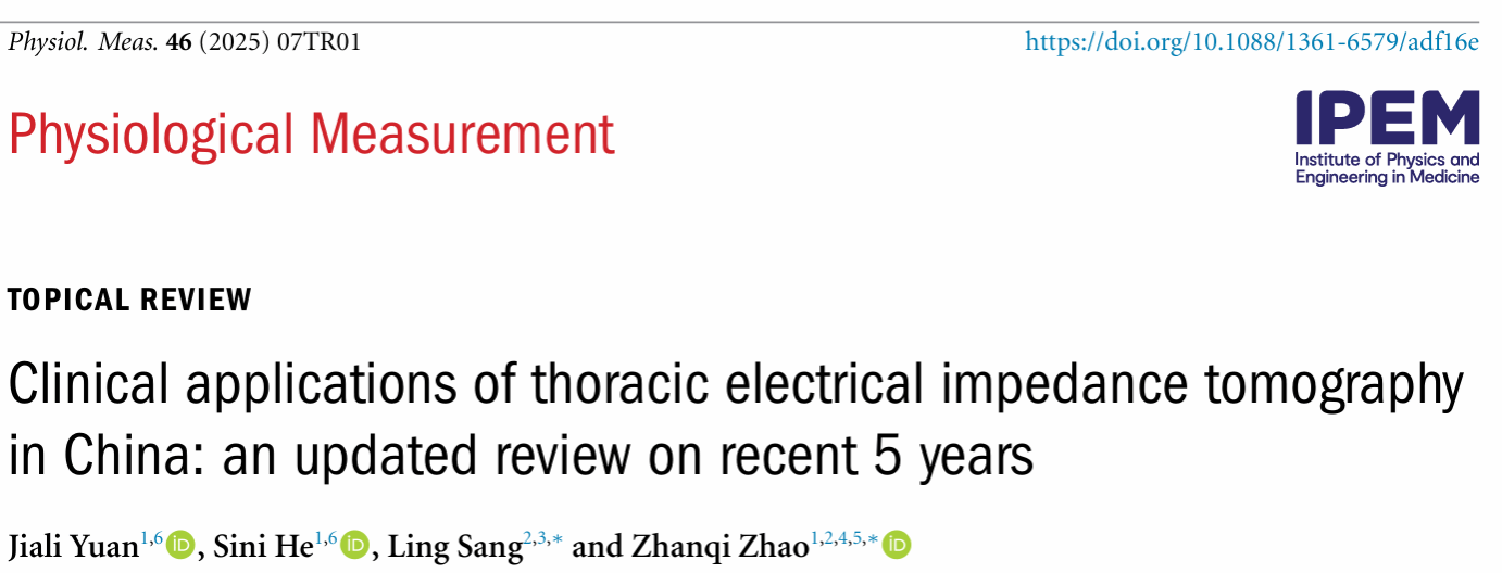 今年,我院大学三年级学生袁佳丽在招展奇教授的指导下,以第一作者身份在45年老牌SCI生理学杂志《Physiological Measurement》上发表了题为“Clinical applications of thoracic electrical impedance tomography in China: an updated review on recent 5 years”的研究论文。该研究系统回顾了近五年间(2020年1月至2025年1月)胸部电阻抗断层成像(EIT)技术在中国医院临床研究与日常应用中的最新进展,全面总结了 EIT 在呼吸监测、治疗效果评估以及个体化通气策略制定等方面的实践经验与重要发现,为相关临床医师与科研工作者提供了具有价值的参考与思路。