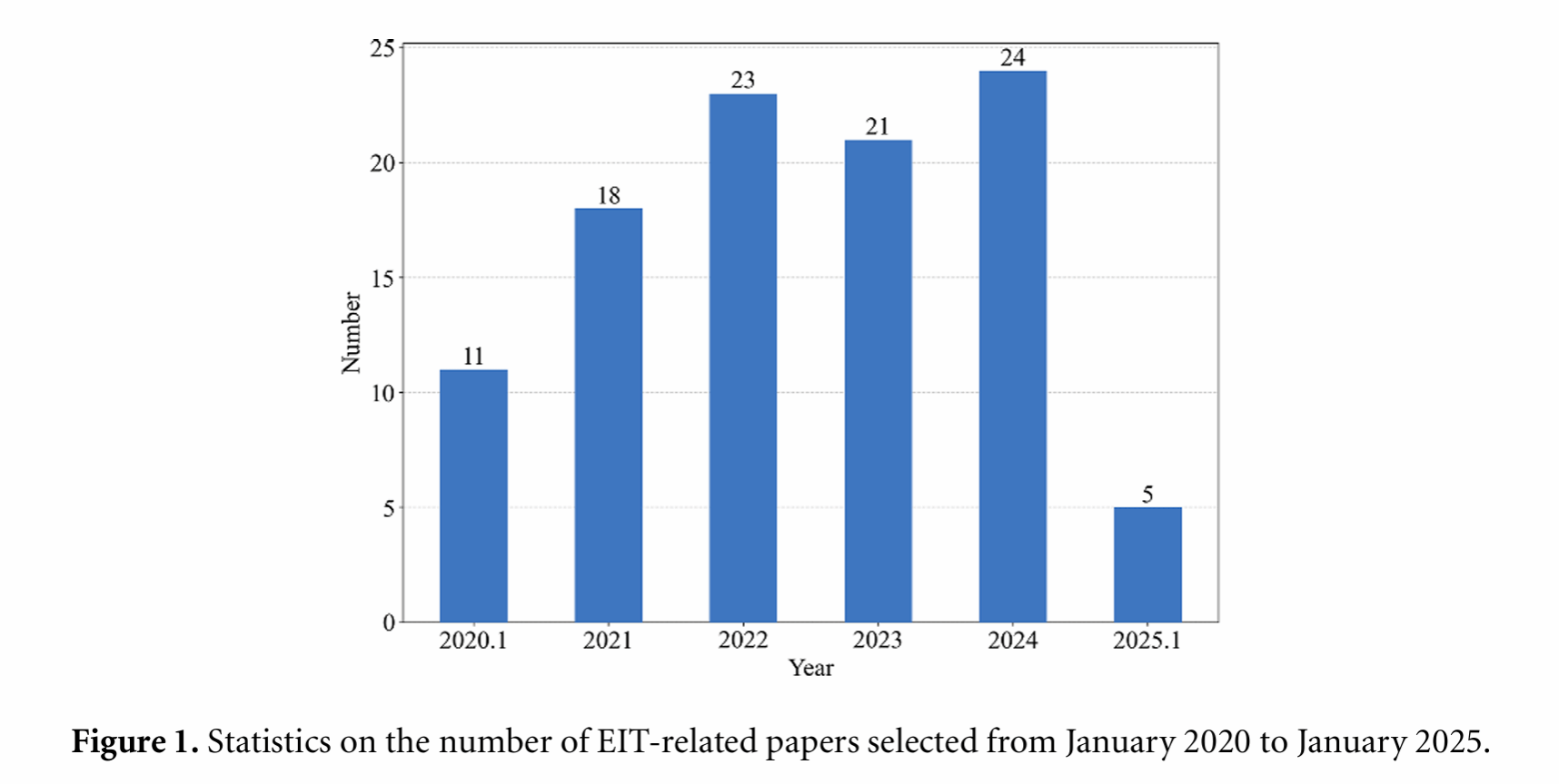 电阻抗成像(EIT)作为近年来迅速崛起的无创功能成像技术,尤其在呼吸系统疾病的监测与管理中受到广泛关注。自上一版综述发表以来,中国在EIT临床应用与产业化方面均取得了显著进展。本次回顾共纳入了2020–2025年间发表的102篇胸部EIT临床研究论文,数量较五年前大幅增长,充分体现了其在重症医学、麻醉、康复及慢性呼吸疾病管理中的价值。随着设备可及性和便携性的提升,EIT 的应用场景已从传统的ICU延伸至日常慢病管理和健康筛查。特别是在 COVID-19 疫情期间,EIT因能够可视化区域通气分布,被纳入国家诊疗指南,用于指导通气设置(如个体化 PEEP 滴定),从而显著推动了其在国内医疗机构中的普及。截至2025年初,中国已有至少6款国产EIT设备获得NMPA批准,其中部分系统已实现智能手机级体积与无线连接,标志着床旁肺功能监测正加速迈向便携化与智能化的发展阶段。