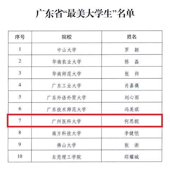 近日,广东省教育厅、中共广东省委宣传部公布2025年度广东省“最美大学生”名单,我院2022级何思妮同学荣登榜单,成为全省10名入选大学生之一。