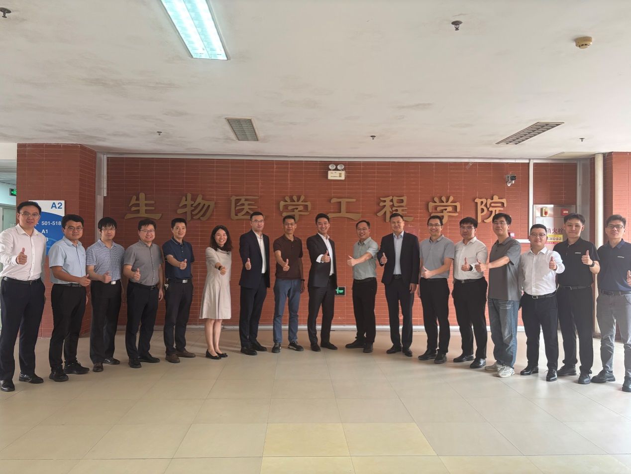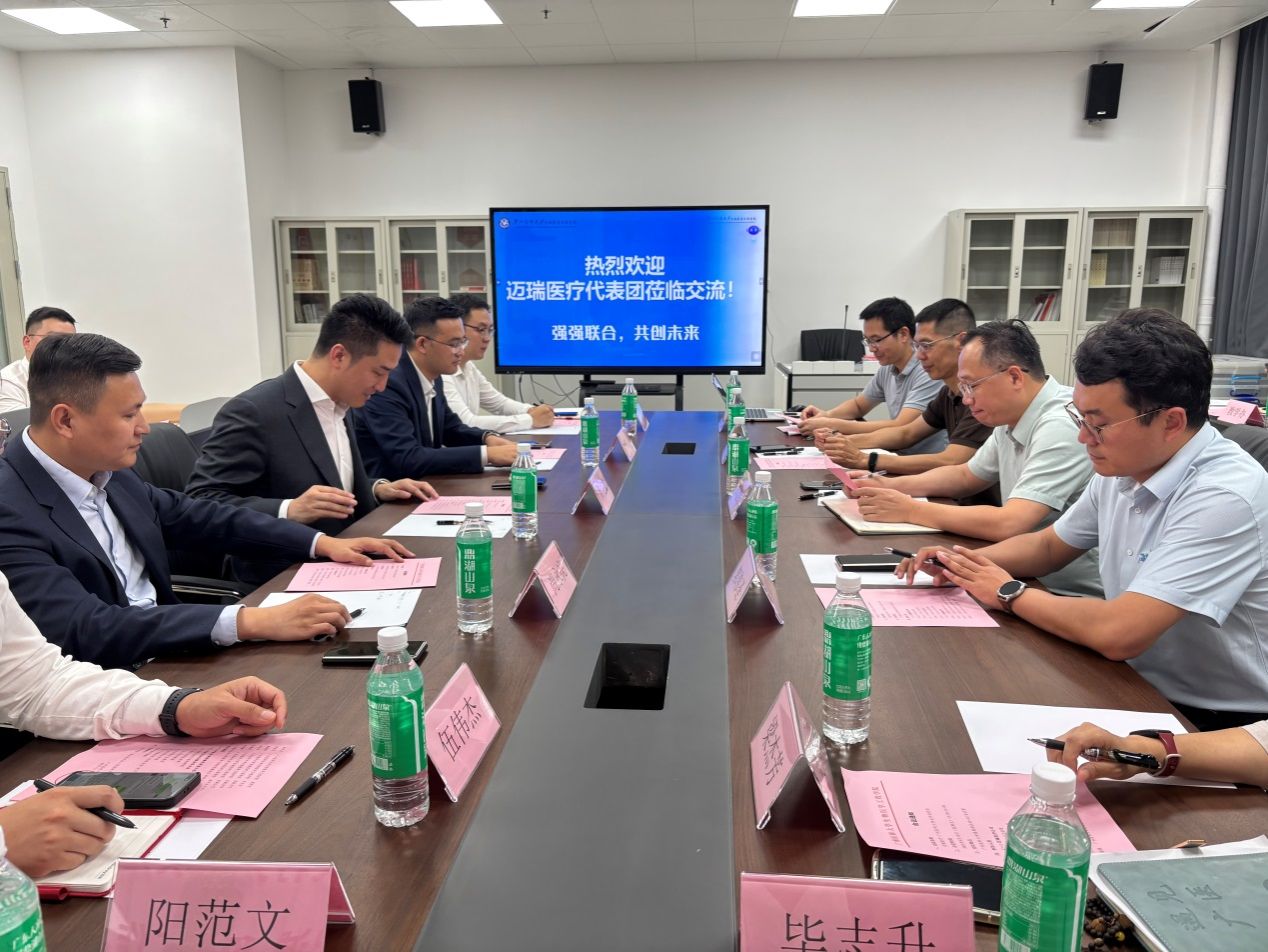 9 月 19 日,迈瑞医疗华南区总经理黄先胤、广州分公司总经理尚永亮等一行访问我院,我校教务处处长郑建民、学院党总支书记柳海山等参与会见,各系及成果转化办公室、教学管理办公室、科研管理办公室相关负责人出席座谈交流。