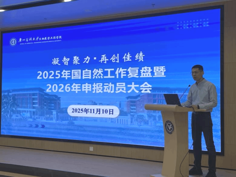 随后,郭伟圣副院长代表学院,向科研人员的辛勤付出表示感谢。2025年,我院国自然申报成绩可圈可点,共申报80项,获批9项,立项数量同比翻倍,在学校排名中位居前列。然而,成绩背后也存在隐忧:立项总数仍有提升空间,部分科研人才的潜力未充分释放,项目申报的原创性和临床应用价值有待加强。针对这些问题,郭副院长提出“全员覆盖,不落一人;提质增效,拒绝形式”的工作方针,并部署了一系列具体举措,如开展分阶段辅导、压实科室责任、排查潜力项目、制定个性化方案等。