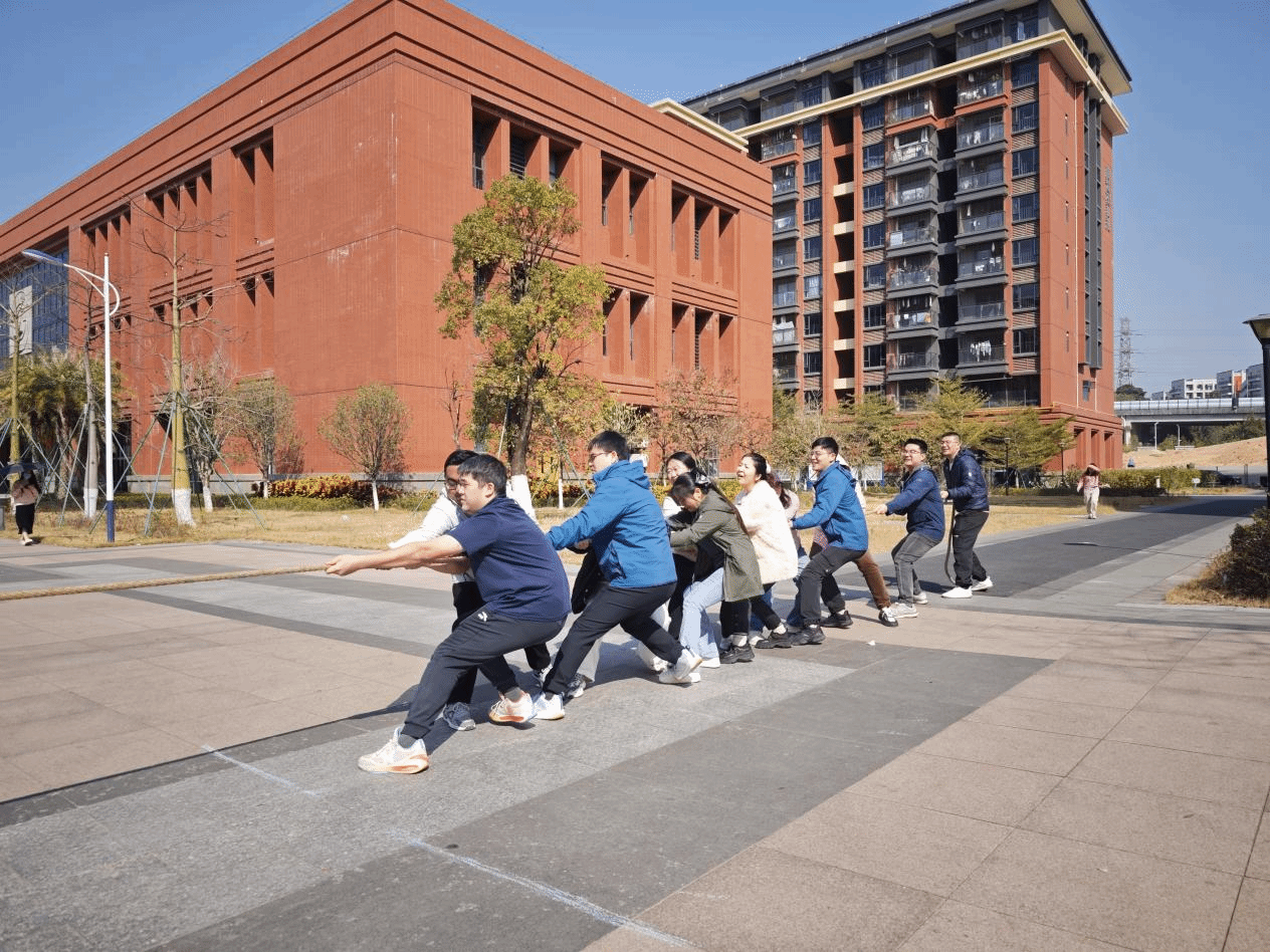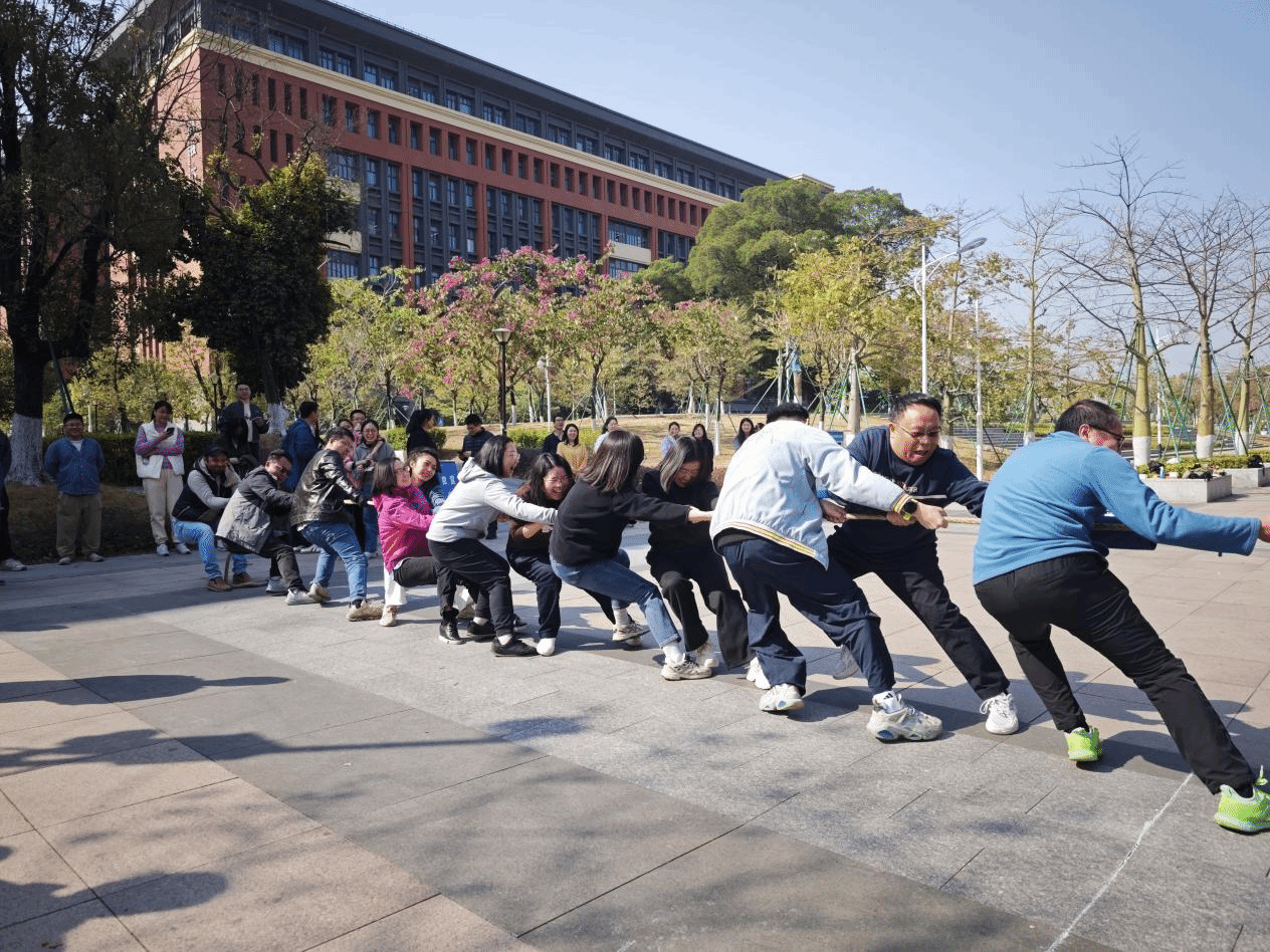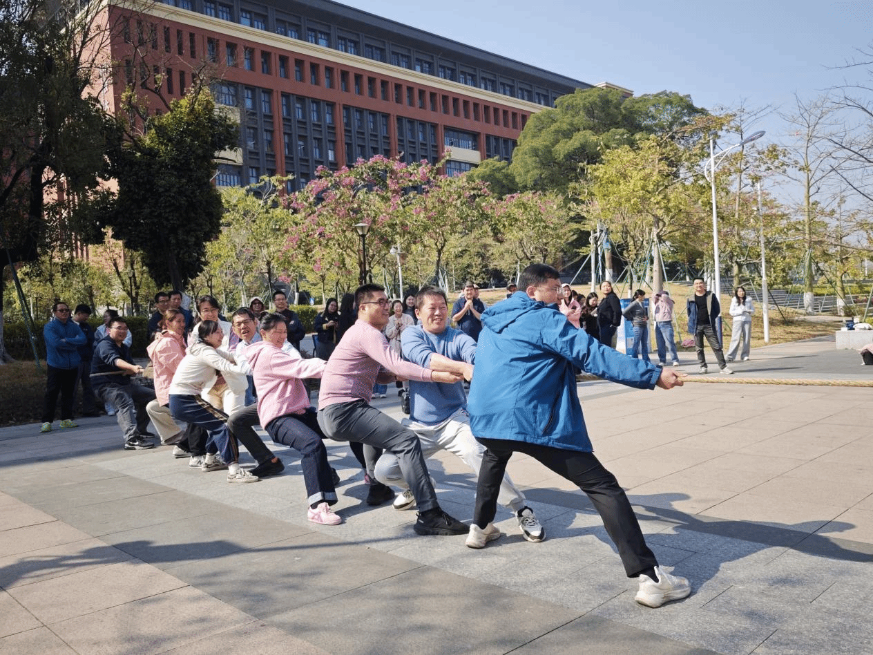 为丰富教职工文化生活,增强团队凝聚力,营造和谐奋进的学院力量,1月14日上午,由学院部门工会主办的“冬韵激昂聚合力 绳彩飞扬拔头筹”第三届教职工拔河比赛在校工会的大力支持下于学术交流中心一楼广场处火热举行。来自各工会小组的8支代表队齐聚赛场,以昂扬斗志诠释团结力量。