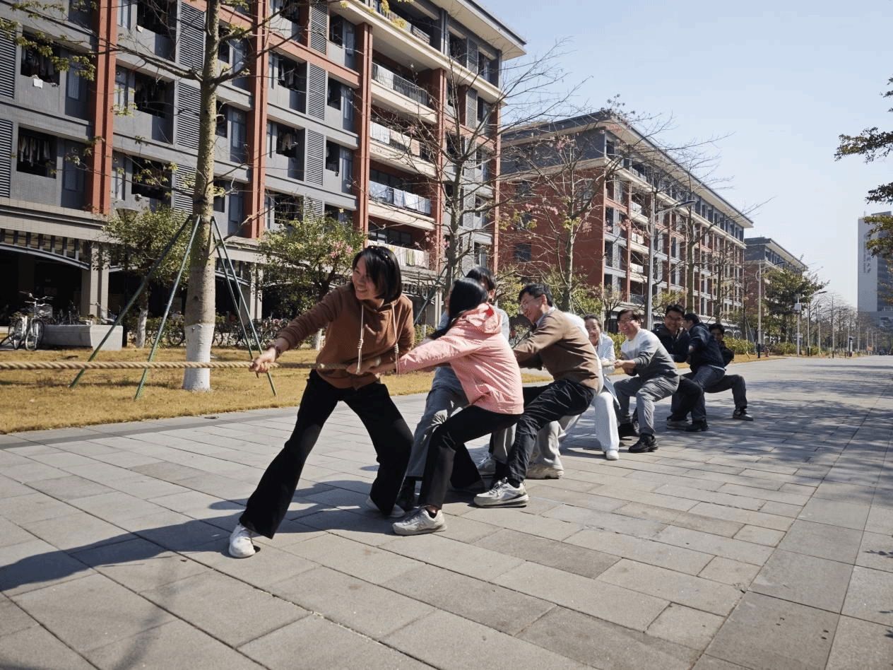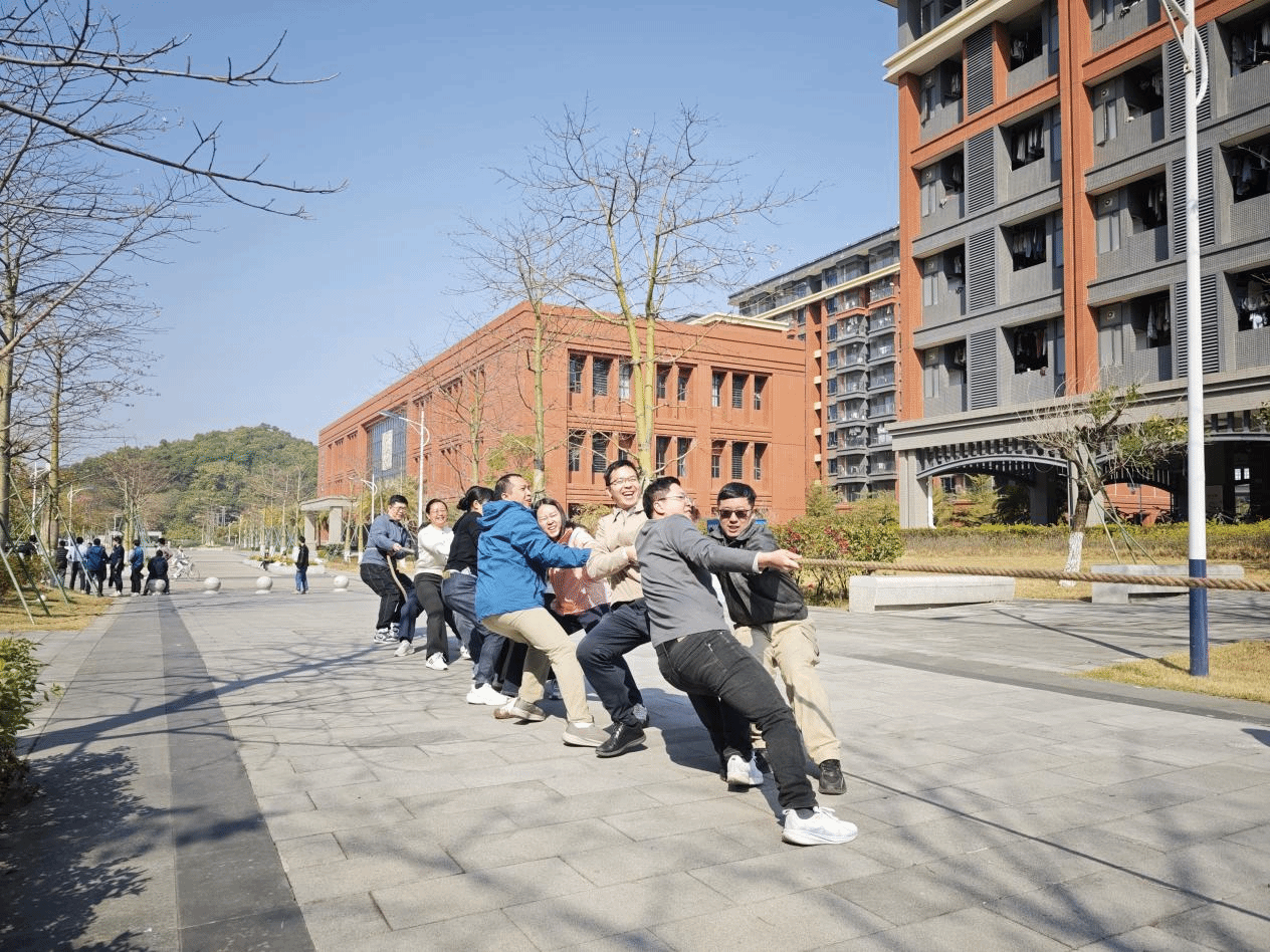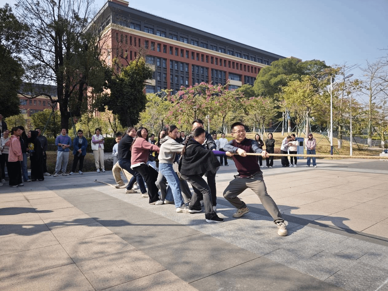 为丰富教职工文化生活,增强团队凝聚力,营造和谐奋进的学院力量,1月14日上午,由学院部门工会主办的“冬韵激昂聚合力 绳彩飞扬拔头筹”第三届教职工拔河比赛在校工会的大力支持下于学术交流中心一楼广场处火热举行。来自各工会小组的8支代表队齐聚赛场,以昂扬斗志诠释团结力量。