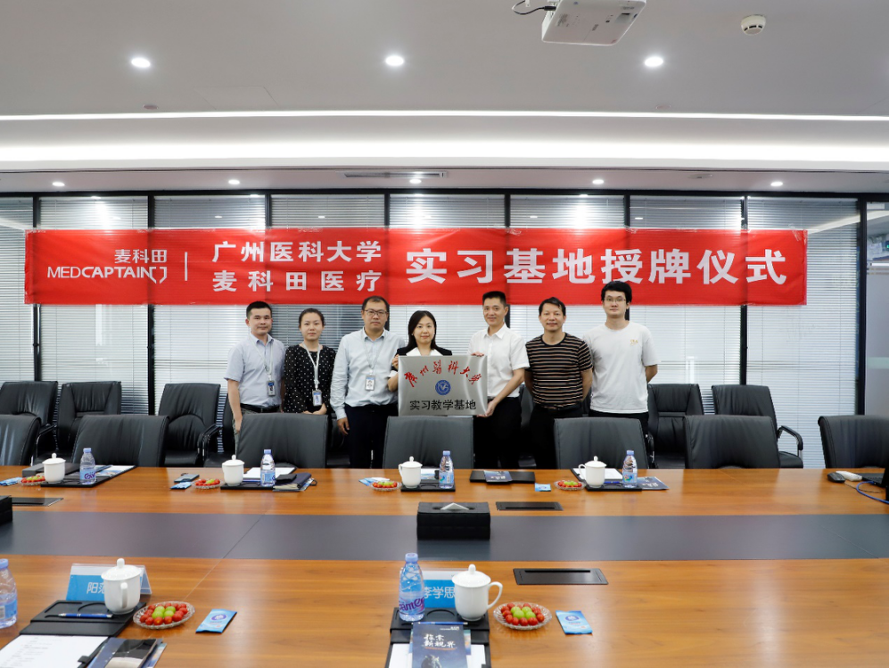 在深圳麦科田生物医疗技术股份有限公司,人力资源部高级总监张荣、战略发展部总监江慎斗、招聘经理舒哲、高级招聘主管陈伟琦等出席了挂牌仪式。双方就人才培养、实习教学基地建设、校企合作等进行了深入交流并共同为实习教学基地揭牌。