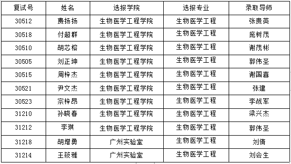 《广州医科大学生物医学工程学院2023年生物医学工程专业硕士研究生调剂录取名单》