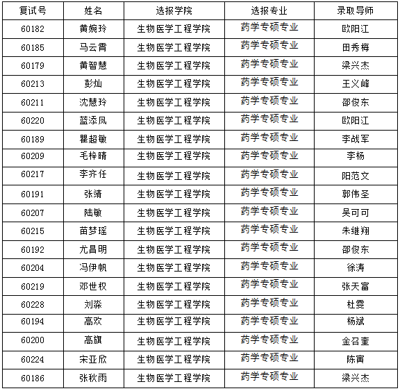 《广州医科大学生物医学工程学院2023年药学专硕专业硕士研究生调剂录取名单》